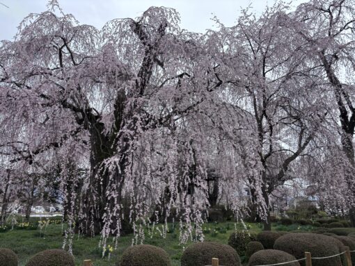 安養寺さまは初めてのご縁でしたが、以前私が出講させていただいた長野教区寺族女性研修会に坊守様が参加されていたそうで、この度自坊でもということでお声かけいただきました。境内にある枝垂れ桜が圧巻で、かなり有名だそうです。海外の方も結構来られるようで、今回はまさに満開の時期と重なり、素晴らしい桜を見せていただきました。境内にはたくさんの方々が桜を見に来られていました。でももっと素晴らしいのは、降誕会の法要にも広い本堂に大勢のご門徒さんが参詣され、非常に熱心にご聴聞くださっていたことです。尊いお育てを賜りました。有り難うございました。
