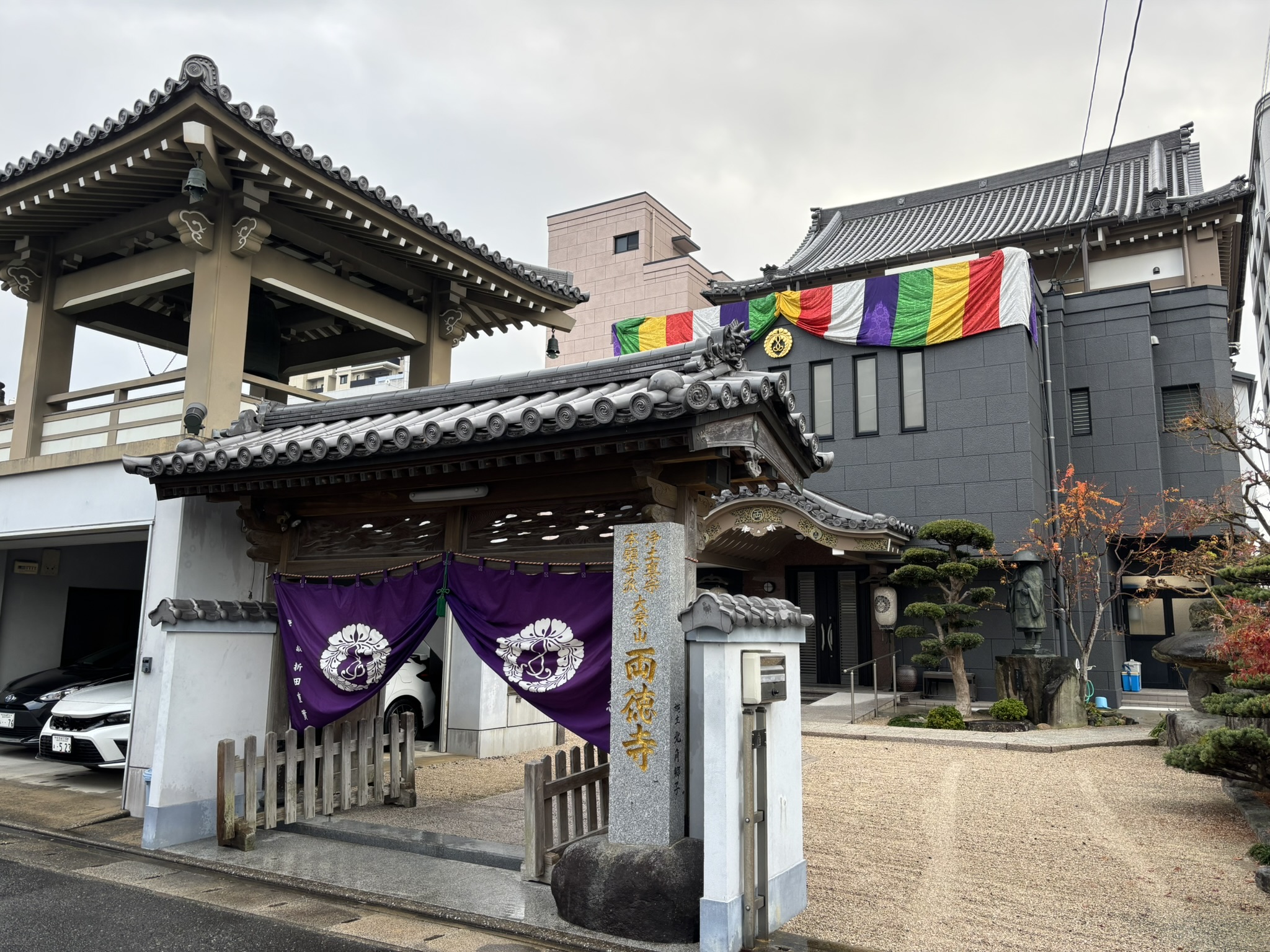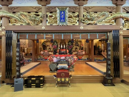 11日から13日まで福岡県行橋市へ行ってまいりました。教覚寺に二度ご出講くださった、舟川先生のご自坊である両徳寺様での報恩講法要にお招きいただき、3日間にわたり合計5座、お取り次ぎをさせていただきました。昔からお念仏の盛んな地域であったそうですが、そういう土徳のようなものに加えて、非常に熱心に教化活動をされているお寺様でもあるので、とにかくお聴聞される御同行の姿に、私自身尊いお育てをいただきました。常にお念仏の声が聞こえてくるご縁でした。最終日は私の作曲した歌を一緒に歌っていただきましたが、間奏の時にご門徒の皆様からお念仏がこぼれ出てくるのは、初めての体験でした。また、舟川御住職はYouTubeなどでもご活躍されており、そのご縁で東京や浜松(教覚寺にもいつもお参りくださっているMさんです)、福岡市内からもお同行がお参りになられていました。
