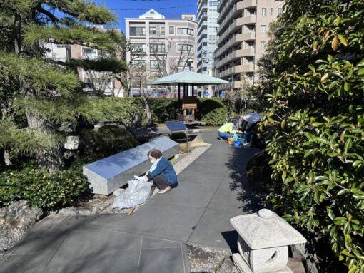 そして土曜日は境内清掃。今年から、平日お仕事をされている方にもご参加いただけるように、週末に行うことといたしました。その効果は早速現れ、25名もの方々がご参加くださり、また初めての方もいらっしゃいました。大勢でお掃除していただいたので、境内がとてもきれいになりました。ご参加くださった皆様、有り難うございました。その後はご法事を勤めさせていただきました。