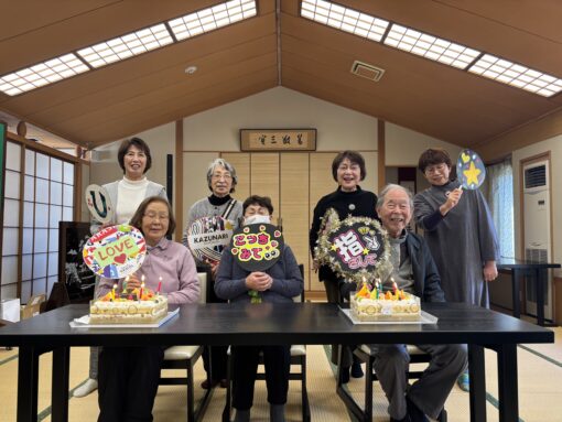 よく通る声で、抑揚のあるセリフやナレーション、誰もが聞き入っていてしまったことと思います。役員の皆さまが早めに集まり準備された机で、お誕生日会もやりました(12月、1月、2月の方)。