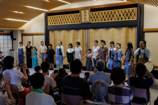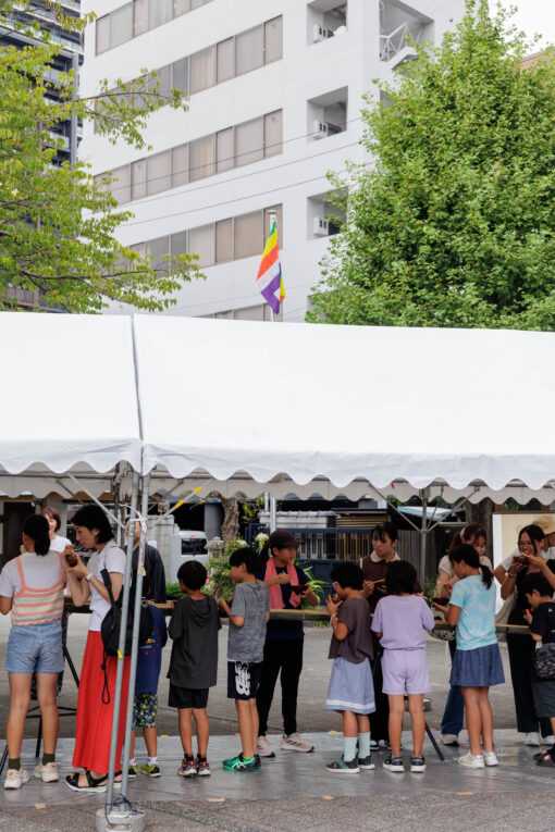 第3位は、、、、「戦後80年・平和の鐘」です。ご承知のとおり、今年は戦後80年の年にあたり、全国各地で関連の行事が行われました。教覚寺でも、毎年行っている平和の鐘ですが、今年は3名の門信徒の方々に戦争体験の話をしていただき、さらには沖縄や広島の子ども達のスピーチを見たり、また「夏休みこどもシアター」の皆さまの劇を鑑賞したり、そして最後はキッズサンガクラブによる流しそうめんで楽しんだりと、大勢の皆さまと平和について考える日となりました。特に、3名の実際に体験された話は、多くの子ども達にとって、もちろん大人にとっても印象に残るものでした。また、静岡市国際交流協会が主催した「夏休み子どもシアター」では、色々な国にルーツを持つ子ども達が一緒になって劇を演じきり、その姿はまさに平和そのものでした。国と国の前に私たちは同じ人間です。平和の第一歩は、まず個人と個人でお互いに知り合い、仲良くなることだと思います。流しそうめんでは、それこそ外国にルーツを持つ方も含め、老若男女が楽しそうに流れてくるそうめんを召し上がっていらっしゃいました。キッズサンガクラブの皆さま、お話くださった3名、そしてご参加くださった多くの皆さま、ありがとうございました。