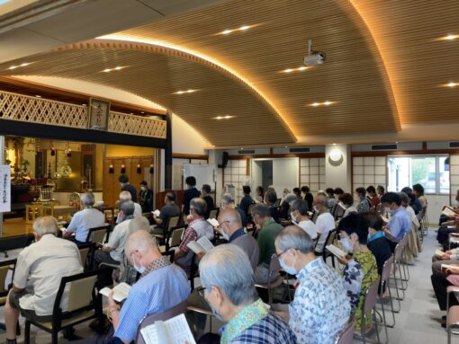 昨日1日は、9月の門信徒会例会でした。まだまだコロナがおさまらない中、そして台風の影響で突然雨が強くなったりする中、お昼の座に62名、夜の座には28名がご参拝くださいました。
