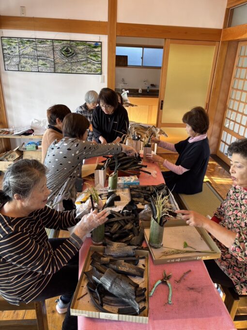 消臭効果もあり、調湿効果がある(湿度が高い時には湿気を吸収し、乾燥時には吸い取った湿気を吐き出す)竹炭。このように飾れば華やかさもあり、一石二鳥ですね!集まって頂いた皆さま、ありがといございました!
