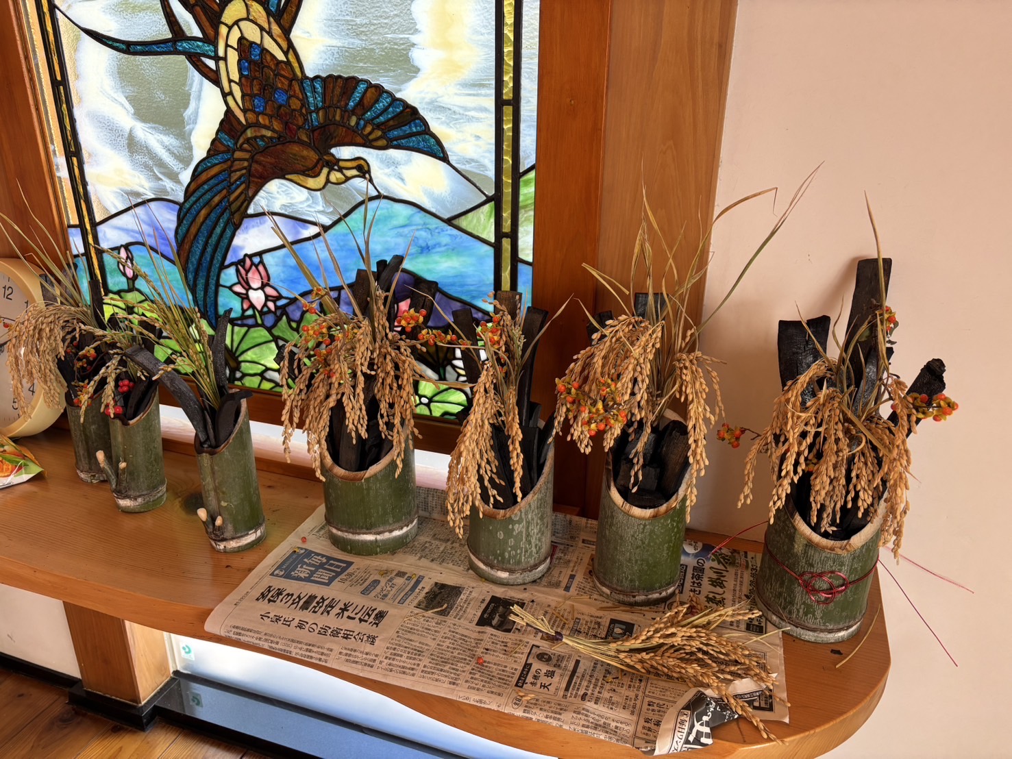 本日はダーナショップクラブの方々が何人かみえて、先日作って頂いた竹炭を使って素敵なお飾りものを作っていらっしゃいました。