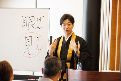 ご講師は、教覚寺へは初めての御出講となる服部法紹先生を広島県からお迎えし、阿弥陀さまのお慈悲について、尊いお取り次ぎを賜りました。涙あり、笑いあり、そして阿弥陀さまの御恩の深さにじんわりとした感動あり、皆様とても熱心に御聴聞くださいました。法縁廟は、お骨を納めるだけでなく、まさに今を生きる私たちが「法(仏法)」に出遇わせていただく宗教施設です。先立って往生された大切な方々が、仏さまとなられ、今こうして多くの方々を、そしてこの私を、阿弥陀さまの前に導いてくださっているのだと、あらためて感じさせていただいたことでした。