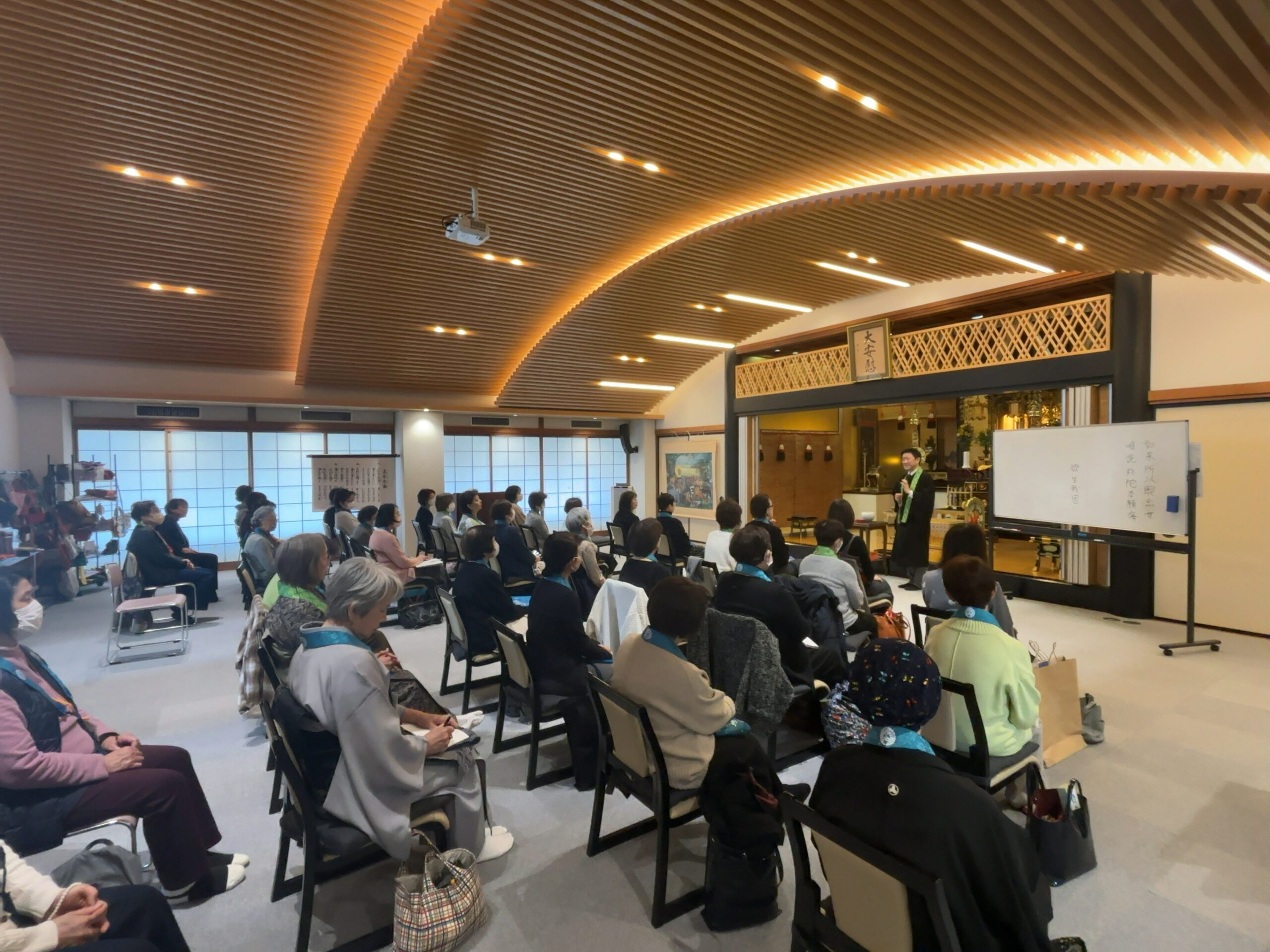 昨日、日曜日は女性の会の親睦会で、寺族合わせて41名のご参加でした。お勤めと、お聴聞の後、今年はお寺の広間で行いました。