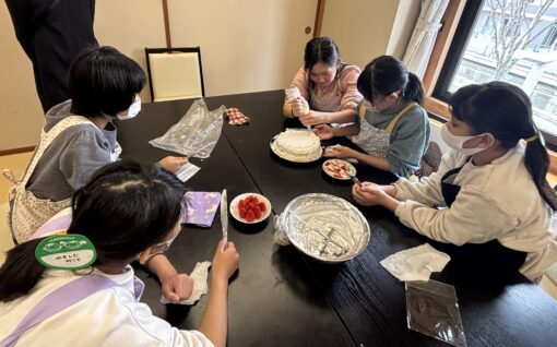 修了式の後は、お楽しみのケーキ作り。といっても、用意されたスポンジ台に保護者の方が準備してくれた生クリームといちごで飾り付けをするというもの。今回は、生クリームといちごだけしか準備せず、物足りなかった子もいたようですが、生クリームを絞ってデコレーションするのに時間をかけ楽しんでいたと保護者の方から教えて頂きました。